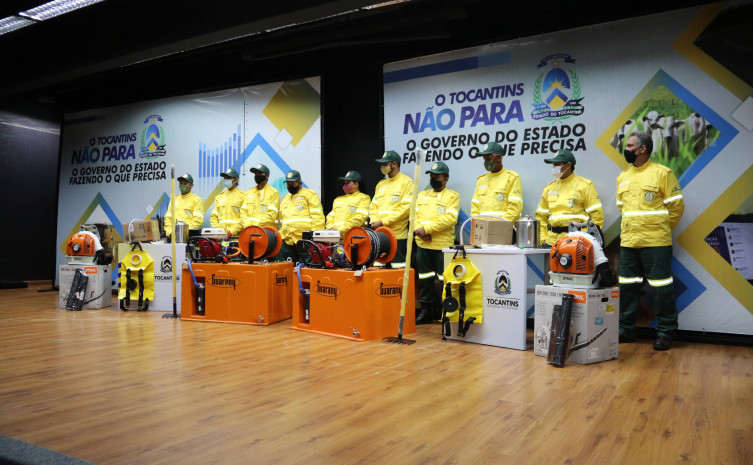 Também na manhã desta quarta-feira, 24, foram entregues aos brigadistas do Naturatins, novos equipamentos de trabalho, sendo: 150 kits completos de fardamento, Equipamentos de proteção individual (EPIs), 20 Sopradores Sthil BR 600, 60 mochilas costas, 12 pingas fogos, 10 kits Pick-up para Incêndio Florestal.