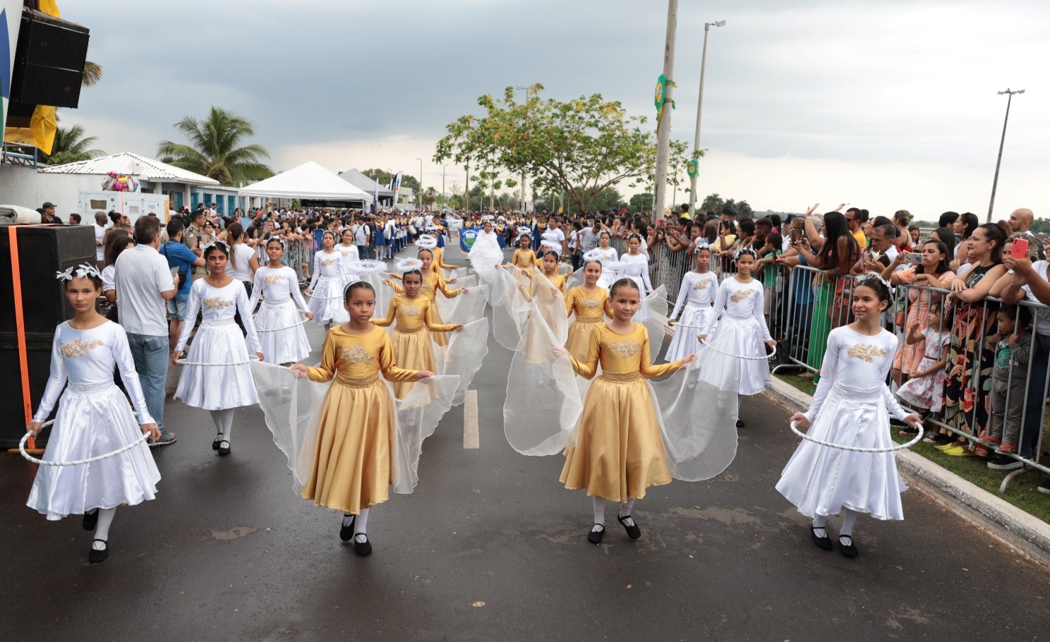 Cerca de 1.300 participantes compuseram os pelotões que desfilaram pela Via Lago. Grande parte foi composta pelos 485 alunos de 37 escolas municipais, que vestiram branco e exibiram faixas e cartazes com mensagens como “A paz é a única batalha que vale a pena lutar”, contra o racismo, contra a discriminação e valores como honestidade, companheirismo, respeito, cumplicidade, diálogo, compaixão, proteção, paciência, inclusão, harmonia, empatia, entre tantos outros.